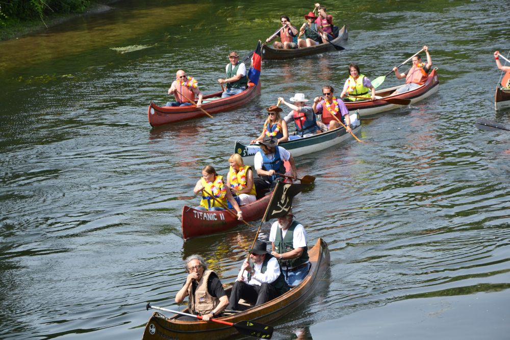 Die Jugendlichen waren unter anderem in dem Boot „Titanic II“ unterwegs, das, wie Graas vor der Parade erzählte, vor etwa 30 Jahren bei einem Projekttag selbst gebaut wurde. „Angst, dass die wie ihr Namensvetter untergeht, hatten wir aber nie“, sagte er.
