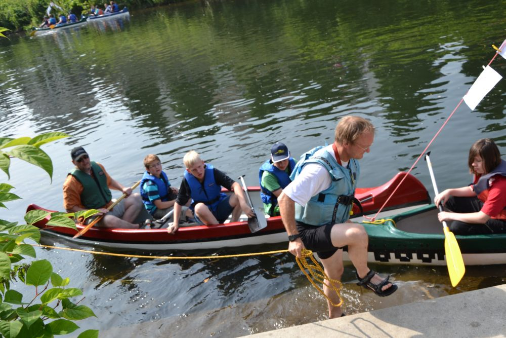 Immer wieder schallten in den 45 Minuten „Kalle, Kalle“-Rufe über die Lippe, deren Ufer von Schülern, Kollegen und auch vielen interessierten Passanten gesäumt war. Schließlich war „Kalle“ der Spitzname des beliebten und engagierten Lehrers.