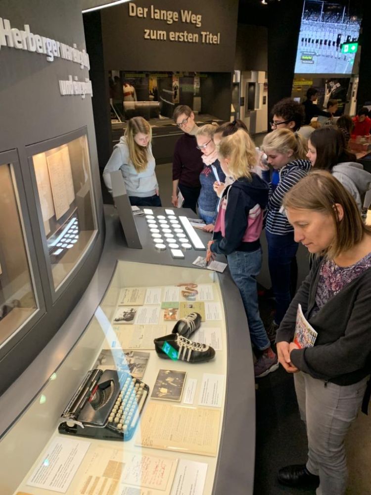 Daraufhin gingen wir zum Fußballmuseum, das gegenüber vom Bahnhof liegt. Das Fußballmuseum war sehr groß und faszinierend. Es hat sowohl den Schülern aus Deutschland als auch den Schülern aus Frankreich gefallen. Gemeinsam mit unseren Austauschschülern mussten wir in Vierer-Gruppen das Rallyeheft abarbeiten und haben viel über die Fußballgeschichte gelernt. Anschließend haben wir gemeinsam im Museum Fußball gespielt.