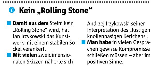 Die Idee, sich auf diese Weise im Gymnasium zu verewigen, hatte vor zwei Jahren Paul Schulz-Gahmen. Der Abiturient wollte einen Bronze-Steini auf dem Schulhof aufstellen und dachte an eine Realisierung in der Schweiz. Warum so weit reisen, fragten sich die damalige Beratungslehrerin Ingrid Möllmann-Schmidt und ihre Kollegen. „Und dann ohne Projektbegleitung und uns als Beratungslehrer – das ging ja gar nicht“, erinnerte sie sich mit Augenzwinkern am