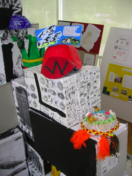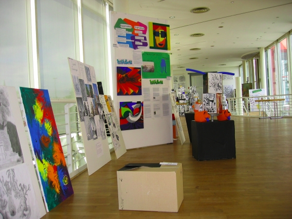 Die Exponate und Installationen, die in der Ausstellung gezeigt wurden, waren in den letzten Monaten im Kunstunterricht der Klassen und Kurse des FSG erarbeitet worden.