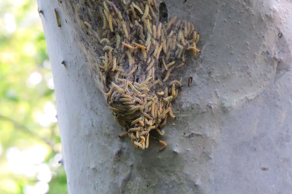 | 16.05. an Heikenberg | 16.05. Stamm voller Gespinste | 16.05. Raupen im Gespinstbeutel |