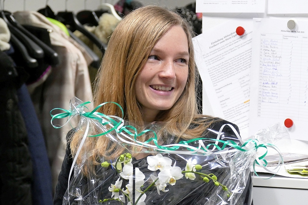 Anna-Lena Kreß ist seit ihrer Referendarzeit am „Stein“, und zwar mit den Fächern Deutsch und katholische Religion. Sie wechselt an die Graf-Engelbert-Schule in Bochum, wodurch sich ihr Schulweg auf 500 Meter verkürzt.
