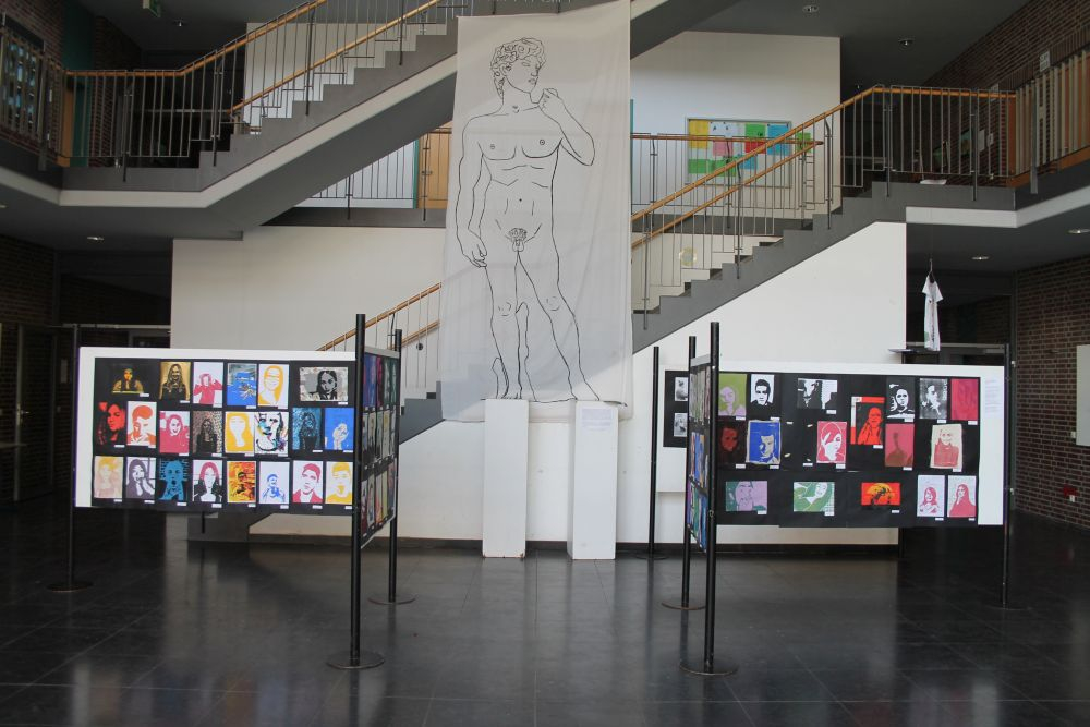 Es wurde eine Auswahl vielfältiger Arbeiten des letzten und diesjährigen Schuljahres (Fotos, StopmotionVideos, dreidimensionale Objekte, Malereien, Collagen und Zeichnungen) getroffen, die die Arbeit im Kunstunterricht widerspiegeln, so sind unter anderem „expressive Selbstporträts“ als Linolschnitte, großformatige Bildbearbeitungen (von Lünen) in Anlehnung an den Fotografen Andreas Gursky, Collagen zur Lieblingsfarbe, Graphic Novels zu Erlebnissen während des Betriebspraktikums, Transformationsprozesse von Musik zum Bild, Handplastiken mit dem Titel „handgreiflich“ sowie lebensgroße Skulpturen in Anlehnung an die Arbeit von Alberto Giacometti und vieles mehr zu sehen. Ausgestellt wird auf den beiden Ebenen des Foyers im Neubau, dem Cafeteriabereich sowie auf den Gängen des Neubaus. Ein Rundgang durch die Ausstellung wird durch rote Pfeile angezeigt.