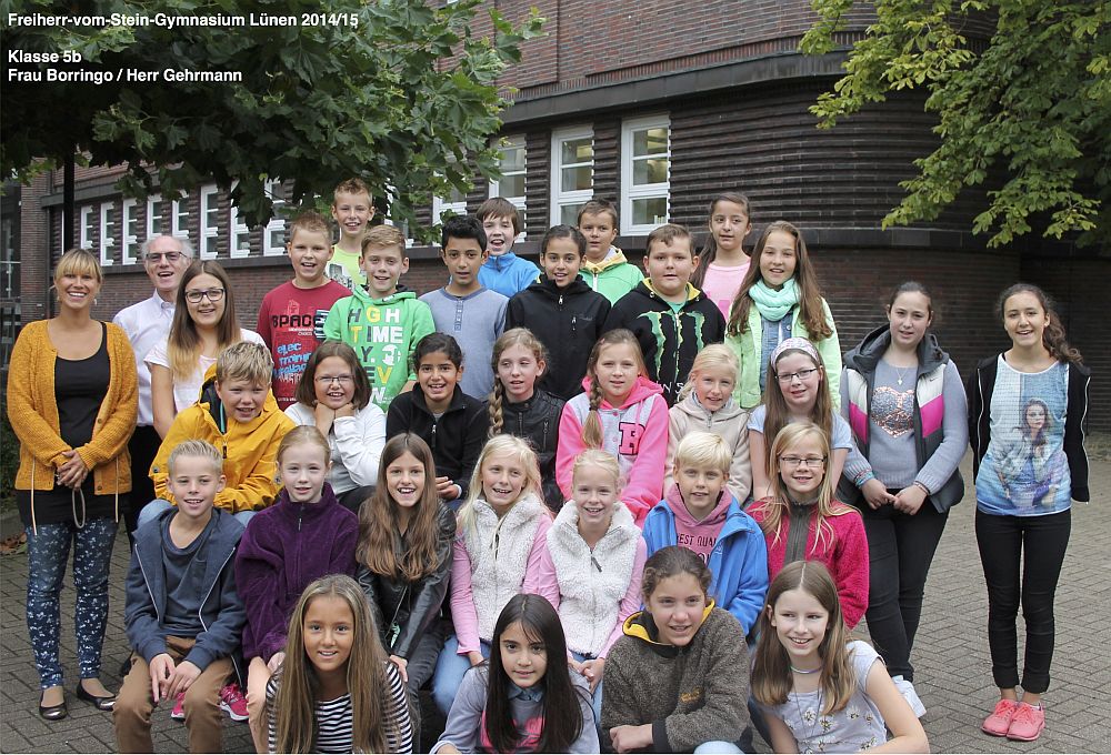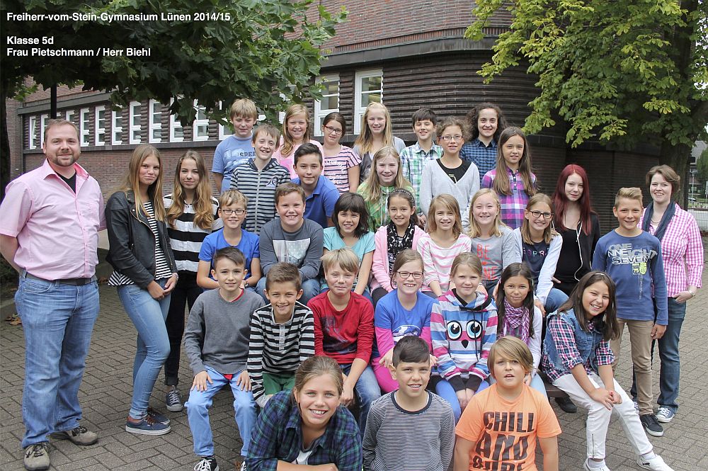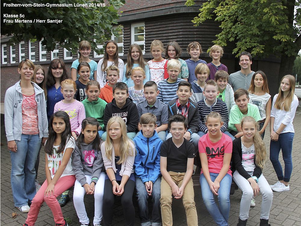 Insgesamt 111 Schülerinnen und Schüler in vier Klassen wurden am 21.8.2014 eingeschult. Die Neu-Steinis erlebten nach dem Gottesdienst in der St. Georgs-Kirche eine Einschulungsfeier in der Aula mit Musik von stringendo und windaction und einer kurzen Einlage der TheaterAG. Viele gute Wünsche der Schulleitung, der Schülervertretung, der Elternvertretung und des Erprobungsstufenkoordinators begleiteten die Kinder auf ihrem Weg zur ersten Schulstunde am Stein. Mit Neugier und großen Erwartungen ging es in die Klassenräume, um die neuen Mitschülerinnen und Mitschüler und die Klassenlehrerteams kennenzulernen. Begleitet wurden sie von unseren Paten aus der Klasse 8, die in den ersten Wochen Orientierung und Hilfe bieten.
