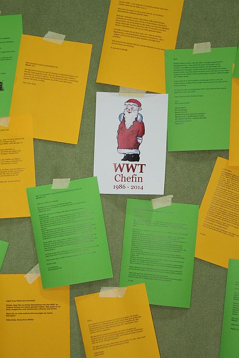 Viele Ehemalige hatten sich bei Frau Möllmann-Schmidt per E-Mail für die Organisation des WWT bedankt. Die ausgedruckten Mails konnten an einer Plakatwand eingesehen werden. Markus Fischer, Abiturjahrgang 1992, schrieb z.B.: