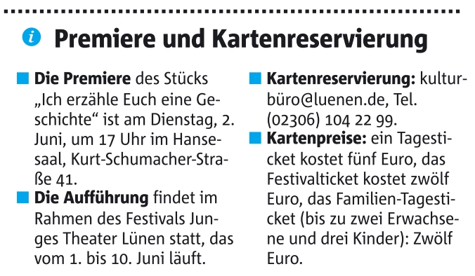 Klar ist – auch nach dem Festival will das „Freie Theater Team des Multikulturellen Forums“ weiter machen. Ideen für neue Stücke gibt es schon. „Die wollen wir mit den Leuten abstimmen, die bei uns mitmachen“, so Marie. Mandy ergänzt: „Nach den Sommerferien starten wir mit dem zweiten Stück.“