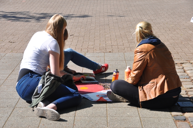 Größtenteils realisiert wurde das Projekt letzte Woche Mittwoch im Rahmen einer ganztägigen künstlerischen Aktion. Das Wetter spielte nicht nur mit, sondern erleichterte die Arbeit sogar durch strahlenden Sonnenschein und unterstützte die angenehme, produktive und durch und durch künstlerische Stimmung bei diesem Projekt.