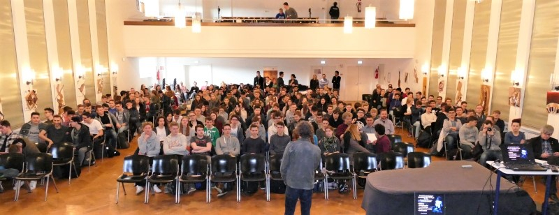 Als der stellvertretende Schulleiter und Physiklehrer Herr Böhm zu Beginn der dritten Stunde den bekannten Professor für Experimentelle Physik aus Dortmund begrüßte, war die Aula mit über 200 Gästen gut gefüllt.
