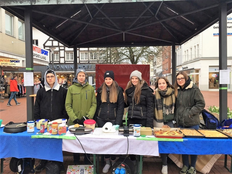 Am Samstag, 10.Februar.2018, startete die Schülervertretung eine zweite Aktion. Es wurden Waffeln, Crêpes und Kuchen in der Stadt verkauft, um so auf den Kinderhospiztag aufmerksam zu machen und weitere Spenden einzunehmen. Insgesamt konnten an den beiden Tagen über 2000 Euro eingenommen werden. Die SV ist dankbar für die Spenden und die herzliche Reaktion der Lüner, da dieser Tag schon seit einigen Jahren sehr wichtig für das FSG ist.