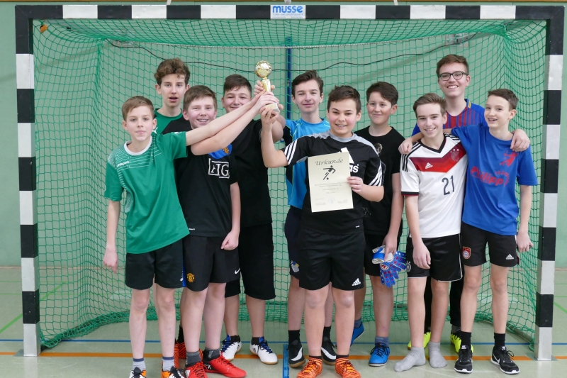 Bei den Jungen gab es einen spannenden Zweikampf zwischen der 7a und der 7d, den die 7d aufgrund ihres besseren Torverhältnisses für sich entscheiden konnte. In der Jahrgangsstufe 8 belegten die Mädchen der 8d ohne einen Punktverlust (drei Siege) den ersten Platz. Bei den Jungen setzte sich die Klasse 8c ebenfalls souverän mit drei Siegen durch und sicherte sich neben dem Pokal das Finalspiel gegen das Lehrerteam.