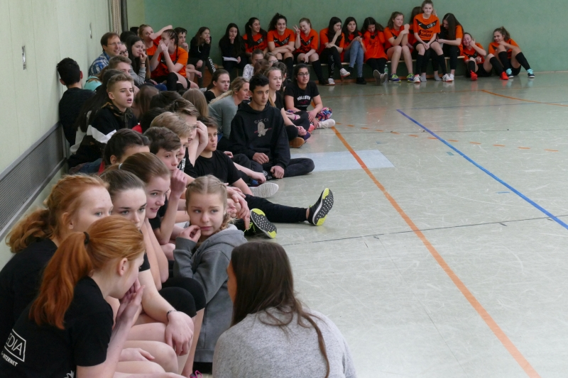 Tolle Stimmung herrschte beim 9. Mittelstufenturnier der Jahrgangstufen 7 und 8 des Freiherr-vom-Stein-Gymnasiums am 09.03.2018 in der Sporthalle. Marvin Kumor und Simon Erling hatten das Turnier geplant, organisiert und geleitet und waren mit der Durchführung sehr zufrieden. Die Zuschauer konnten spannende Spiele, faire Zweikämpfe und tolle Teamleistungen beobachten. In der Jahrgangsstufe 7 setzten sich bei den Mädchen die 7a mit zwei Siegen und einem Unentschieden als verdiente Sieger durch.